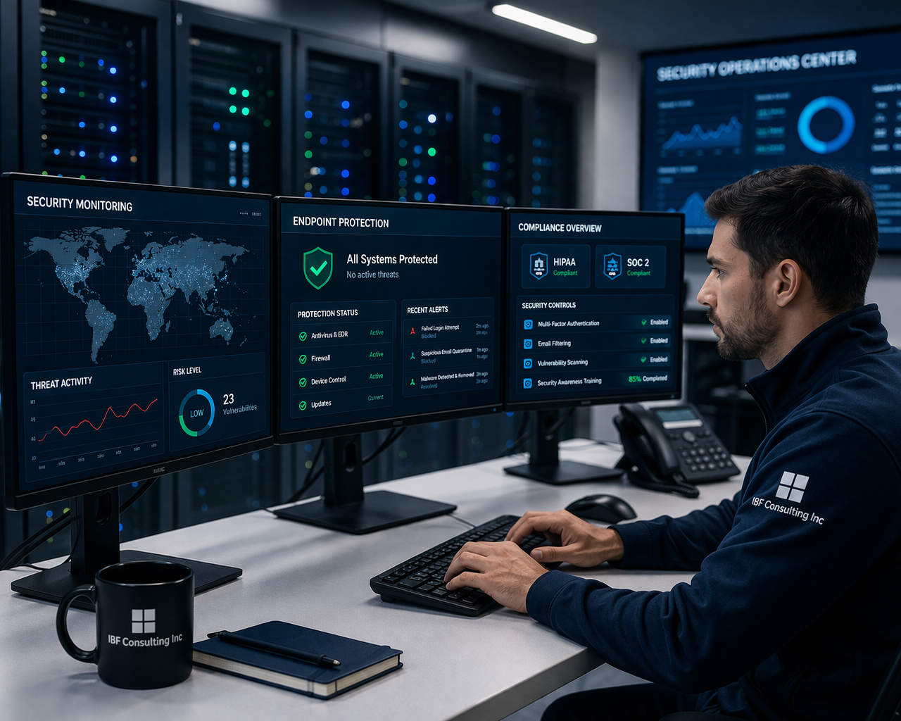 IBF Consulting delivers comprehensive cybersecurity services designed to protect your organization from evolving threats while supporting regulatory and compliance requirements.
